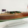 In 1940 Chris-Craft introduced a new hull style called the torpedo deck or barrel back. Years later it is among the most highly coveted of the famed Chris-Crafts, and thanks to the model masters at Dumas, you can own one in miniature. In keeping with the Dumas tradition of Chris-Craft kits, this model features a doubled planked PVC and mahogany veneer hull, preformed plastic seats, chrome fittings, and complete set of running hardware. Color decals and flag and burgee helps set off the model.
