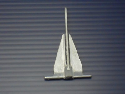 This zinc aluminum spin cast danforth anchor measures 2″ across the bottom and is 3-1/2″ long