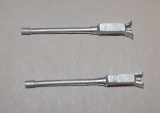 This pair of zinc aluminum spin cast 50 caliber machine guns provides a simple barrel, receiver and firing handle to provide a starting point for making single or twin 50’s. Overall length is 2″