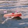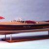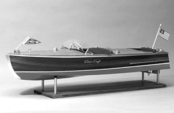 We think the 1949 Chris-Craft 19 ft. Racing Runabout is our sleekest looking Chris-Craft to date. Our 1/8th scale version of this popular racer is 28 inches long with a 9 inch beam. The wood framed hull is covered with expanded pvc and then planked with mahogany veneer. Like our other Chris-Crafts this kit features the finest materials including chrome plated deck fittings complete drive line hardware flag and burgee. Each kit contains everything needed to build a beautiful static display model for the office or den. Or make her RC with a two channel radio Dumas #2025 motor NiCad battery and speed control. You will want to make the powerful Racing Runabout the next addition to you fleet.