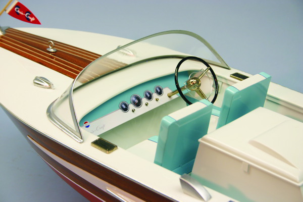 This streamlined beauty is the latest addition to our Chris-Craft line of model boats. Its’ plank on bulkhead construction utilizes our popular expanded PVC sub-planking and mahogany exterior planking.