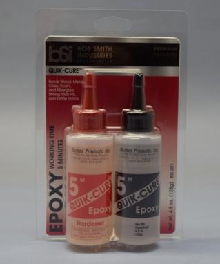 This two part epoxy sets up in five minutes. 4 1/2 oz. of glue. We commonly use this glue over CA to strengthen frame joints. This will speed up your building.