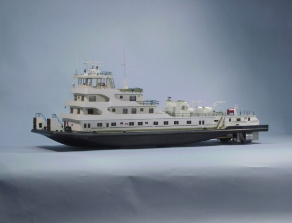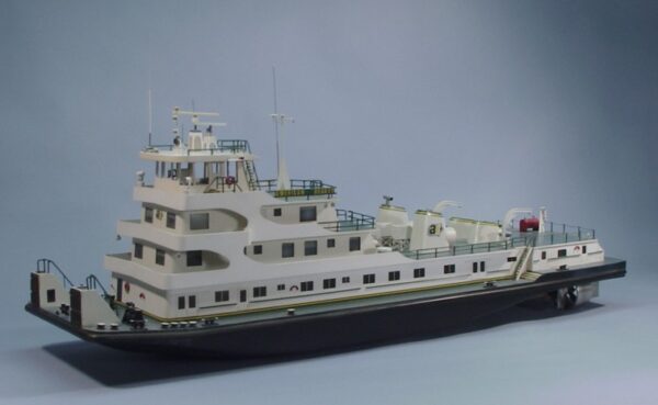 To power the Beauty, we recommend two Dumas #2004 electric motors and running hardware kit #2339. The running hardware is authentic in every detail right down to the twin kort nozzles. Twin forward control rudders and four flanking rudders are included to give you the maneuverability necessary to control your push boat. Other options include an 81 piece deck hardware kit #2104, which supplies all the detail castings to give her those finishing touches. We also offer kit #1219 which contains all the parts needed to make one box and one raked bow barge. We even include the cleats so you can tie your own 4 acres of barges together.