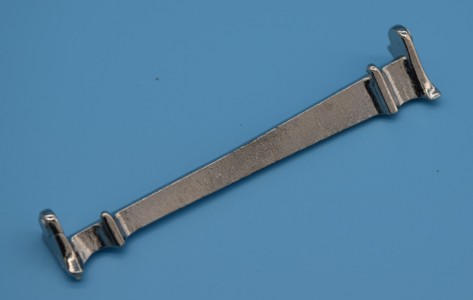 This zinc aluminum spin cast left side windshield frame is tumbled and chrome plated. Used in the Chris-Craft Triple Cockpit Barrel Back.
