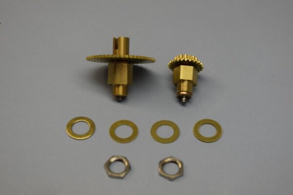Brass two gear compound gear assembly provides 4.5:1 reduction when geared with #2009 pinion. #2009 pinion sold separately.