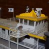 The Dumas model of the Creole Queen is constructed of precision die-cut birch and mahogany plywood. The detail package included in the kit is immense. It has stampings, wood turnings, castings, plastic parts, and a 3 page decal set. Running hardware kit #2349 is the paddle wheel drive system for the model. It includes an internally reduced gear head motor that supplies the perfect speed to the paddle wheel. For the more adventurous, the size of the Creole Queen leaves the door wide open for those modelers wishing to try less conventional powering methods. Live steam would certainly be a possible option. So if you have always dreamed of building your own working stern wheeler, the Dumas Creole Queen is for you.