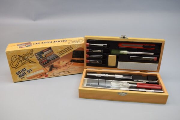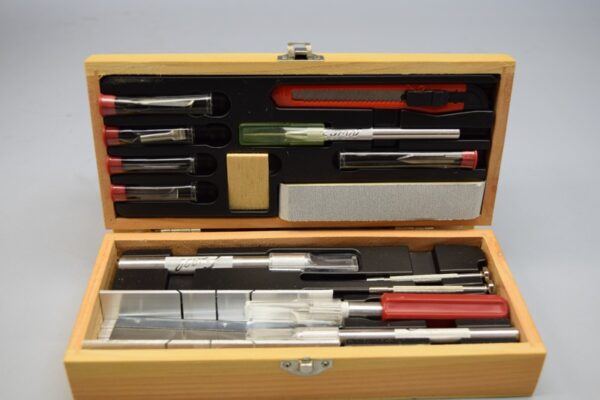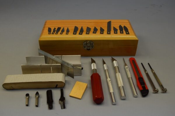 This deluxe knife set housed in a handsome wooden case, is not just the perfect set for the wood model builder but is also versatile enough for more complex wood working projects. Each set contains: