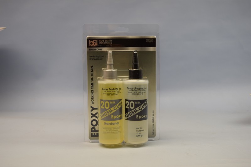 Finish Cure is a laminating and finishing epoxy that can be used with or without fiberglass cloth. It is not a structural epoxy but is is perfectly suited to be used for sealing hulls prior to painting. It is also an excellent choice for finishing the Chris-Craft Models. This 13 oz. kit should finish two to four boats depending on size.