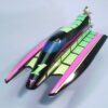 This 24 in. tunnel hull is a water ripper that is sure to please everyone, beginner and pro alike. This kit features precision die-cut plywood con-struction and a preformed ABS cowl. Step by step instructions with lots of photos and a complete plan set that makes building a SNAP. We have even included the building jig, complete steering and throttle linkage in the kit! You’re two feet ahead of the competition with the Dumas HOT SHOT SPRINT 3.5.
