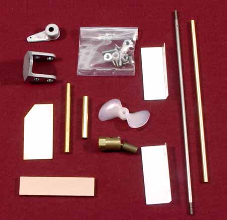 A simple electric drive line to 18″ to 22″ Vee hulls like the Dumas DV-10 and Sk-Vee-10 boats. For use with a 5-40 type motor (Dumas #2025)